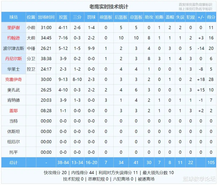 快船替补合计仅得23分,老鹰板凳球员合砍47分。老鹰球员克雷伊奇替补出战30分钟,投篮13中9,三分10中8,罚球3中2,狂砍28分3篮板2助攻1盖帽,正负值+18全场最高。克雷伊奇出生于2000年6月19日,2020年选秀的37顺位。