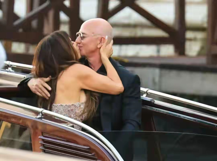 两个人当着摄像头,向全球转播他们炙热的吻,估计旁观者也包括桑切斯的前夫,贝佐斯的前妻和四个儿女。
