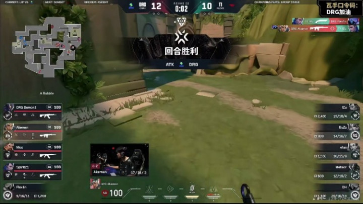 第十六局:DRG开局在C点骗出道具后选择转点进A,幻棱直接不讲道理收下三人后完成进A下包,T1选择两人保枪,DRG拿下胜利!