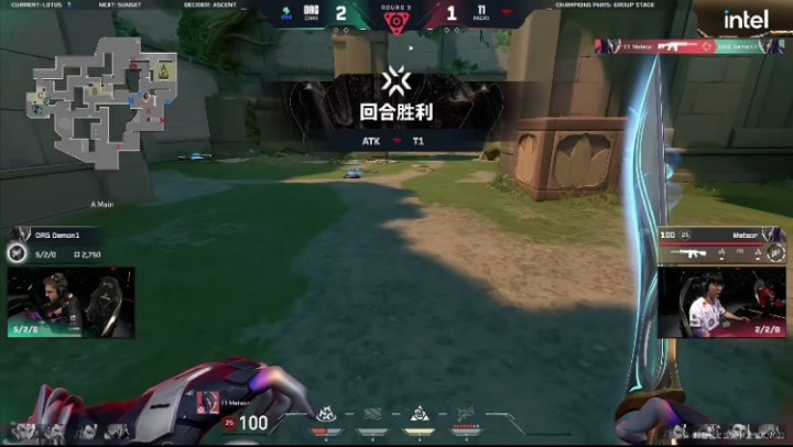 第九局:T1开局想要抢A大但是DRG在台阶直接收下多人,T1在A点被击杀四人后,DRG成功拿下一分!