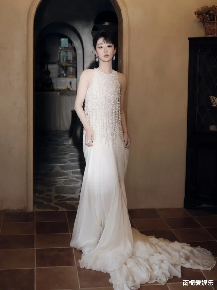 11月6日,杨紫迎来了她的33岁生日,一场以“珍珠”为主题的高定写真发布瞬间点燃全网。她身穿黎巴嫩顶级高定品牌Georges Hobeika 2023春夏系列的白色珍珠裙,层叠羽瓣间缀满细碎珍珠与立体蕾丝,宛如从文艺复兴油画中走出的古典少女。搭配法国Boucheron高级珠宝,极简水滴钻石耳饰与低髻盘发形成“繁简对比”,既温婉又不失气场。这一身“克制的华丽”迅速登顶热搜,被赞“美出新高度”。