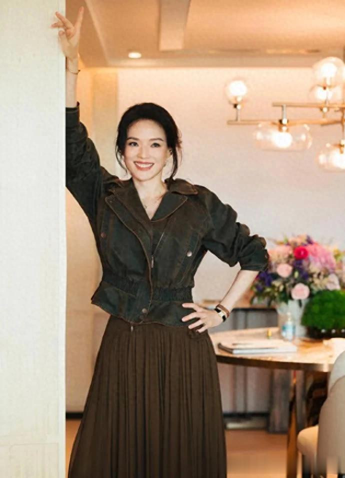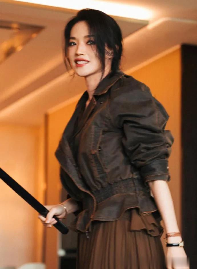 舒淇换风格后气质大变! 穿短夹克+棕色长裙, 时髦又高级!